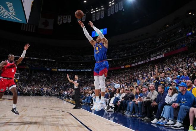 今年季后赛首轮,威少场均能拿下13.8分4.8篮板2.8助攻1.3抢断,投篮命中率43.3%,三分命中率更是达到41.9%。在掘金与快船的抢七生死战中,他交出了16分5篮板5助攻5抢断的惊艳数据。尽管次轮因手伤影响数据有所下滑,但他的坚韧精神赢得了全联盟的尊重。