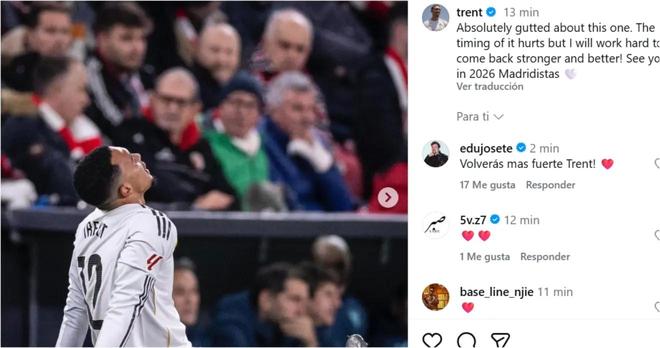 在他发布消息后,队友们的祝福迅速涌来。其中最早回应的是他的好友贝林厄姆,他写道:“以更强姿态回归,兄弟。”此外,维尼修斯、弗兰-加西亚、恩德里克等众多皇马队友也纷纷留言,祝愿他早日康复。