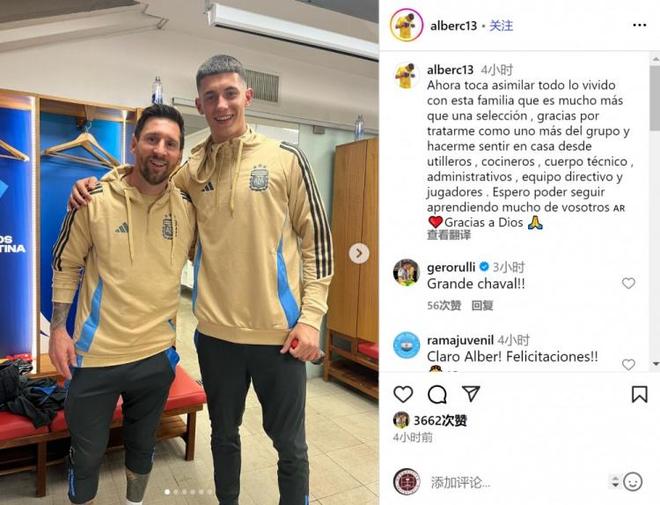 直播吧9月9日讯 皇马16岁门将卡斯特劳随阿根廷国家队训练,他在社交媒体上晒出与梅西的合照。